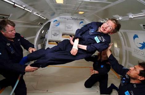 Pour les non initiés, le site Internet du ministère de la recherche français précise que le « principe du vol parabolique est globalement le suivant : sur la phase ascendante à plus de 45°, les moteurs sont poussés de manière à annuler progressivement l’effet de la portance. Arrivé en haut de la courbe à 10 000 mètres, avec portance quasi-nulle, l’avion peut ainsi se mettre en chute quasi-libre pendant une vingtaine de secondes ». Ce système n’a sans nul doute que peu de secret pour le patient ayant participé à l’expérience décrite par le Lancet. La photographie proposée par I. Mackenzie et coll. pour accompagner leur lettre au Lancet, révèle en effet que le premier malade à avoir fait l’expérience de l’apesanteur n’est autre que le célèbre astrophysicien Stephen Hawking. A l’issu de cette expérience qui lui a permis de réaliser des mouvements dans l’espace, alors qu’il est figé depuis plusieurs années dans un fauteuil par sa maladie neuro-dégénérative, il a annoncé : « C’était formidable. J’aurais pu continuer pendant des heures ».