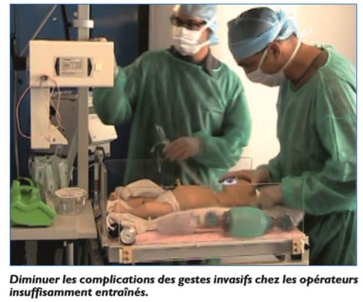 L’intérêt de la simulation médicale est multiple. Elle permet un apprentissage par une mise en situation virtuelle, suivie d’une analyse réflective. Elle autorise également le travail autour d’événements rares. Elle permet enfin, outre l’évaluation des connaissances théoriques et des gestes techniques, de tester la communication en équipe, la coordination des équipiers et la posture du coordonnateur, indispensables au bon déroulement d’une prise en charge et de la gestion de crise. La simulation médicale prend une importance particulière en pédiatrie et en néonatologie, du fait de la vulnérabilité de ces patients, en particulier lors de la prise en charge des situations de détresse vitale. C’est à la naissance qu’un individu court le plus de risques de devoir être réanimé : 1 à 2 % des nouveau-nés ont besoin de gestes de réanimation dans les premières minutes de vie. Or, c’est en période néonatale que les événements iatrogènes sont les plus fréquents(1). Sur le plan historique, les formes modernes de la simulation médicale sont héritées du monde de l’aéronautique où il y avait de toute évidence grand avantage, en termes de sécurité et de coûts, à travailler des procédures et des gestions de crise en simulateurs plutôt qu’en vols réels. Ce type d’expérience a permis d’apprendre que l’erreur ne conduit pas forcément à l’accident, mais que c’est un contexte de défaillance des systèmes de rattrapage des erreurs et de leurs conséquences qui provoque l’accident. L’utilisation de la simulation en aéronautique a ainsi permis une amélioration des gestes techniques, des procédures et du travail en équipe. Le nombre d’incidents a diminué, et leur survenue est mieux gérée.