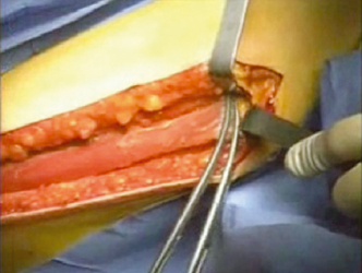 Ils ont en effet rapporté leurs résultats chez 8 patientes, âgées en moyenne de 39 ans. Les fistules avaient récidivé après 3 tentatives en moyenne (1-6) de réparation par d’autres techniques chirurgicales. Le geste a consisté à désinsérer l’extrémité distale du muscle droit interne de la cuisse (muscle gracilis) et à l’interposer dans la cloison recto-vaginale (figure 2). Toutes les patientes avaient une colostomie de protection.