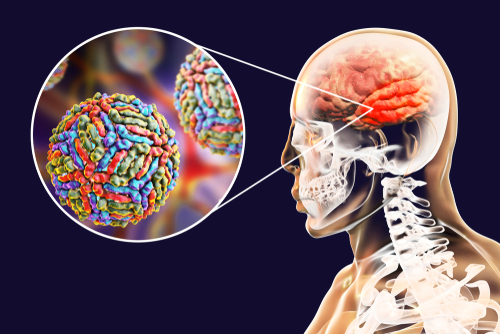 La survenue d’une encéphalite varie selon les pathogènes (dans de rares cas pour la rougeole ou fréquemment en cas de rage) et selon l’âge (encéphalite japonaise chez l’enfant ou West Nile chez l’adulte). Certaines encéphalites sont sporadiques (HSV [virus herpes simplex]), d’autres épidémiques (virus Nipah). La transmission peut être inter-humaine (VZV [virus varicelle-zona]), vectorielle (WestNile), zoonotique (Listeria monocytogenes), par transplantation d’organes (rage) ou transfusion (West Nile).