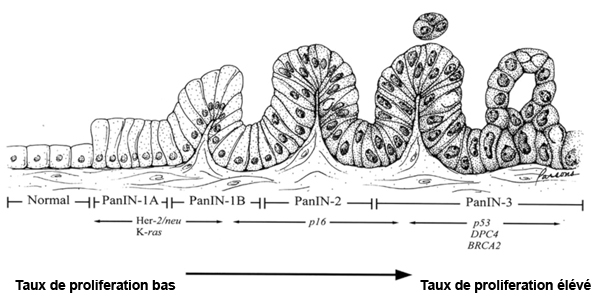 Il reste à évaluer l’intérêt d’une ponction sous écho-endoscopie, voire d’une large biopsie chirurgicale (pancréatectomie caudale) pour rechercher ces lésions de PanIN et proposer une chirurgie préventive en cas de PanIN sévère à haut risque d’évoluer vers un cancer.