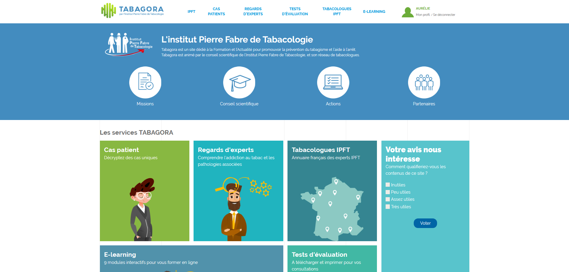 Cette adaptation au terrain est également une prise de conscience du manque de temps qui est souvent l’une des premières difficultés des praticiens. Aussi, afin de rappeler les messages clés, le site Tabagora présente sur la même page différents outils de repérage, intervention brève, dont certains permettent une mise en œuvre rapide (comme le test de Fagerström ou l’échelle HAD). Toujours sur ce même espace, le site répond à l’une des craintes des professionnels de sevrage : ne pas maîtriser les méthodes pour encourager la motivation et construire l’accompagnement. Ainsi, grâce au Questionnaire de motivation et au Dossier de tabacologie, véritable protocole pour construire une consultation, le professionnel verra son accompagnement facilité.