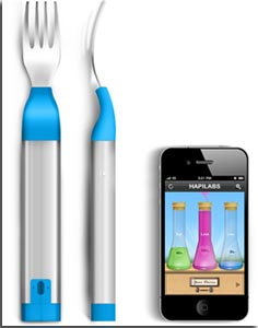 Las Vegas, le samedi 19 janvier 2013 – Si ce n’est pas lors du légendaire concours Lépine que son invention a été remarquée, l’ingénieur à l’origine de l’objet qui a passionné le Consumer Electronics Show (CES) cette semaine à Las Vegas avait un nom prédestiné pour concevoir des objets inédits ! Le succès était pourtant loin d’être facile à deviner. Qu’est-ce qui pouvait bien enthousiasmer les participants de la grand messe du high tech et de l’innovation numérique ? Sans aucun doute un gadget ultra designed surfant sur un quelconque « cloud ». Que nenni. Une fourchette. Jacques Lépine au sein de la start up française Hapilabs a créé une fourchette intelligente, très lointaine successeuse de l’outil qui, affirme-t-on souvent, aurait été introduite en France par Catherine de Médicis. Hapifork a pour particularité de mesurer son temps de parcours entre l’assiette et la bouche. Lorsqu’elle détecte que l’ingurgitation est trop rapide, elle envoie de légères vibrations au glouton trop empressé associées à un signal lumineux.