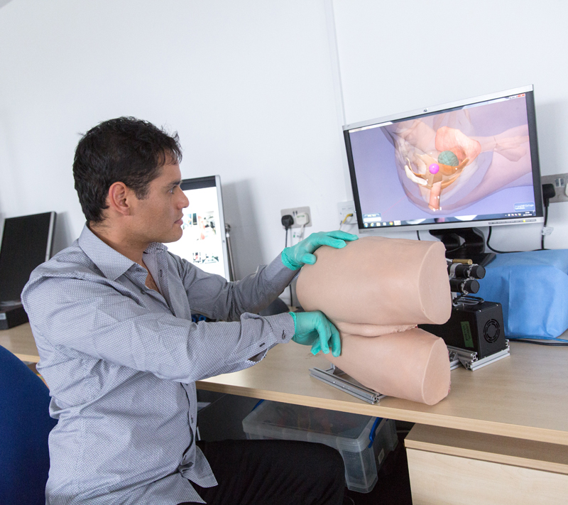 Une équipe de l’Imperial College de Londres a pu redécouvrir combien l’anatomie féminine est complexe. Tout a commencé par la volonté de Fernando Bello, professeur en robotique et simulation médicale et chirurgicale de mettre au point un rectum virtuel. L’examen rectal étant l’un des plus délicats à réaliser, une telle innovation paraissait attendue. Ce projet, bien qu’ayant révélé plus de difficultés qu’envisagées, a inspiré un autre défi, plus difficile encore : celui de réaliser un vagin virtuel. La première étape a d’abord consisté en une analyse précise des gestes réalisés par des gynécologues lors d’un toucher vaginal, à l’aide de différents capteurs. L’anatomie de femmes en bonne santé a également été modélisée minutieusement. Un vagin virtuel en silicone a ensuite été conçu, connecté à un programme, qui grâce à un système haptique, permet à l’étudiant de connaître les mêmes sensations que lors d’un examen réel, avec notamment une réponse en fonction de la pression des doigts. Les chercheurs notent d’ailleurs que le système a été bien plus difficile à réaliser que pour le toucher rectal, puisqu’ici deux doigts et non plus un seul sont impliqués, auxquels s’ajoute le travail réalisé par l’autre main à sur l'abdomen. Le dispositif est complété d’un « retour sur écran » où l’utilisateur peut voir ce qu’il examine en trois dimensions, permettant de confronter la « réalité » avec ses impressions. « Trop souvent, pour ne pas perdre la face devant leurs camarades, les étudiants affirment avoir réussi à palper l’organe recherché, sans y être parvenus. Ici, les choses sont différentes », expliquent les promoteurs du système.