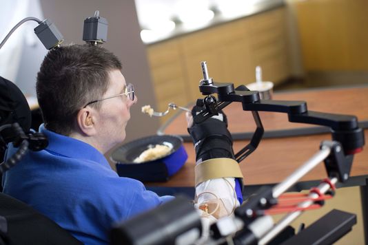 Le patient, Bill Kochevar, âgé de 56 ans, a été blessé au cours d’un accident de vélo il y a près de dix ans au niveau de la quatrième vertèbre cervicale avec comme séquelle une tétraplégie. Le dispositif mis en place a pour objet de reconnecter le cerveau aux muscles du bras paralysé du patient. Pour ce faire, cent-quatre vingt douze micro-électrodes ont été implantées chirurgicalement dans le cerveau du patient. Ces dernières recueillent et analysent les signaux électriques du cerveau au moment où celui-ci pense à bouger son bras et sa main. Transformées en ordre, ces impulsions électriques sont transmises aux muscles grâce à trente-six électrodes présentes sur le bras et l’avant bras de Bill Kochevar. Le dispositif se complète de deux boîtiers installés sur la tête du sujet, tandis qu’un bras mobile de support, également contrôlé par le cerveau permet de faciliter la mobilité du membre paralysé.