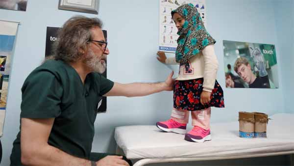 De l’autre côté de la planète, Maya joue dans le sable devant la tente où elle vit au sein du camp de Serjilla en Syrie avec sa famille. L’enfant, atteinte d’une malformation congénitale grave, est née sans membres inférieurs. La guerre l’a jetée là, dans ce décor de poussière où les malheurs s’enchaînent. Pourtant, c’est ici que sa vie va basculer et être transformée de façon inattendue. Repérée par des "humanitaires", l’enfant a été envoyée en Turquie afin de pouvoir être examinée par des orthopédistes. Des prothèses sur mesure ont été conçues pour Maya, ainsi que pour son père qui souffre de la même malformation. Mais la petite fille a rapidement dépassé son ainé : en quelques semaines, celle qui parfois se déplaçait juchée sur des boîtes de conserve, attèles de fortune fabriquées par son père, maîtrise désormais presque parfaitement ses nouvelles prothèses, quand son père éprouve plus de difficultés. Si elle a pu d’abord être un peu effrayée de la hauteur soudaine qu’elle a acquise, elle apprécie désormais de pouvoir prendre part aux jeux des autres enfants du camp.