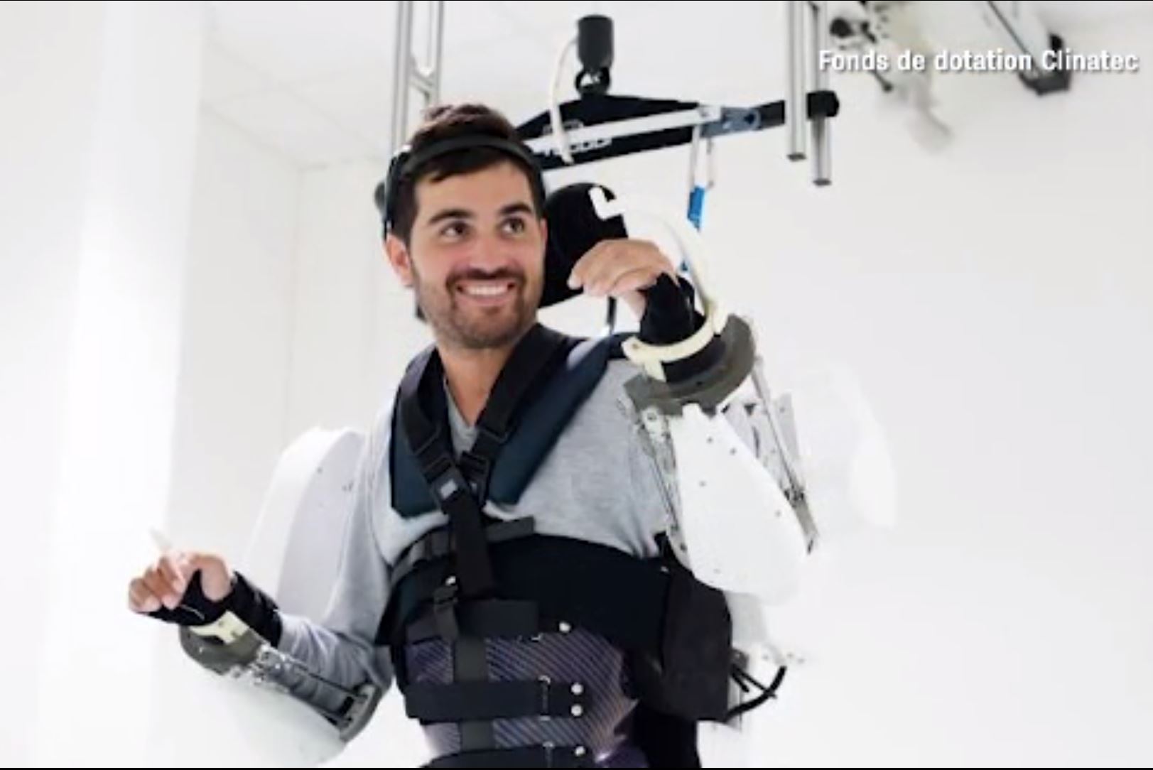 Mais seuls, les outils informatiques ne peuvent pas tout faire. Le rôle du patient, Thibault, a également été fondamental. Il s’est en effet patiemment entraîné à penser afin que les ordres de son cerveau puissent être transformés en signaux intelligibles par la machine. Cette longue phase d’apprentissage a duré plusieurs semaines : 95 jours à domicile, durant lesquels le patient s’entraînait avec, un avatar de jeu vidéo et 45 jours au laboratoire pour contrôler l’exosquelette. « J’ai dû apprendre petit à petit. La plasticité cérébrale fait qu’on retrouve les ordres à envoyer pour obtenir les bons mouvements de manière beaucoup plus souple, beaucoup plus naturelle », a confié le patient.