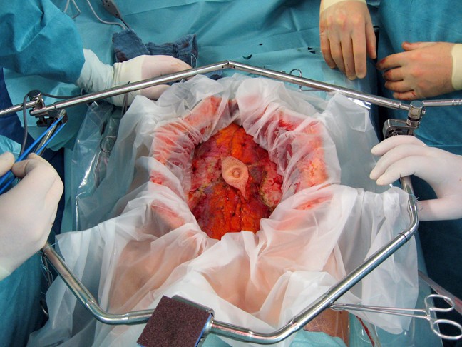 Tous les malades traités dans le centre de Rotterdam entre 2015 et 2018 ont été inclus sauf ceux avec des métastases extra-abdominales ou ayant plus de 3 métastases hépatiques, regardées comme une contre-indication à la CCR-CHIP. Une cœlioscopie peropératoire a été pratiquée pour scorer l’ICP et, en cas de score < 20, la CCR-CHIP a été entreprise. La CCR a alors consisté à réséquer la lésion primitive si elle était encore en place, tous les organes atteints non vitaux, la paroi envahie et tous les implants péritonéaux résécables ainsi que, de manière systématique, la totalité du grand épiploon.