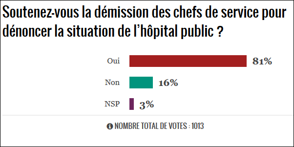 81 % des professionnels de santé ont une opinion favorable de la démission des chefs de service