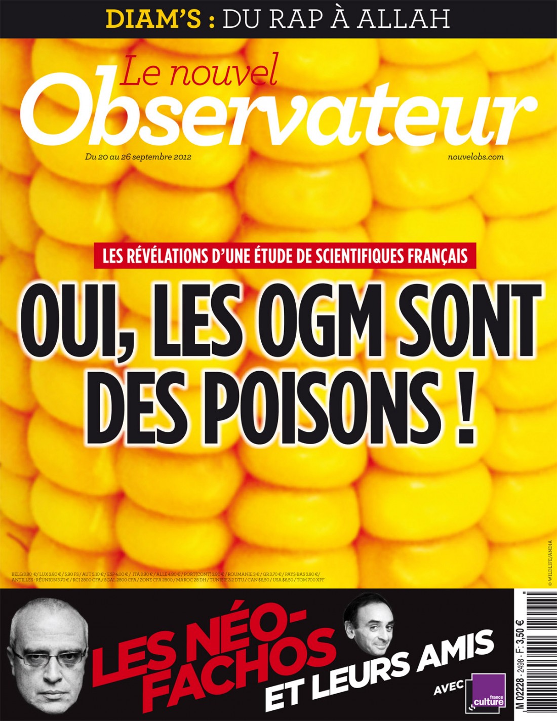 Paris, le samedi 14 décembre 2013 - Petit retour en arrière. En septembre 2012, le Nouvel Observateur crée l'événement en proposant une "Une" au titre pour le moins inquiétant : « Oui, les OGM sont des poisons ». Pour appuyer cette affirmation tonitruante, le Nouvel Observateur reprend les résultats d'un chercheur de Caen, Gilles-Éric Séralini, dont il livre la teneur en exclusivité.